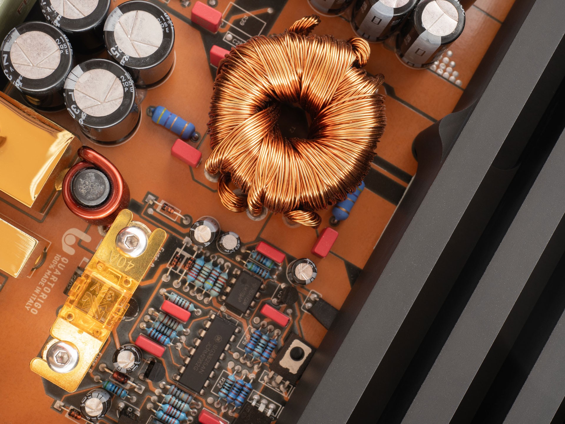 Like all Quartorigo products, the Estremo amplifiers carry a 100% Made in Italy certification. From initial design, through development and design to actual manufacturing and final assembly, the entire process takes place exclusively on Italian soil. Each amplifier is subjected to a rigorous load test with pink noise at full power, followed by a detailed listening test in a real configuration with speakers. This process ensures that every unit meets extreme demands for quality, stability and long-term reliability.