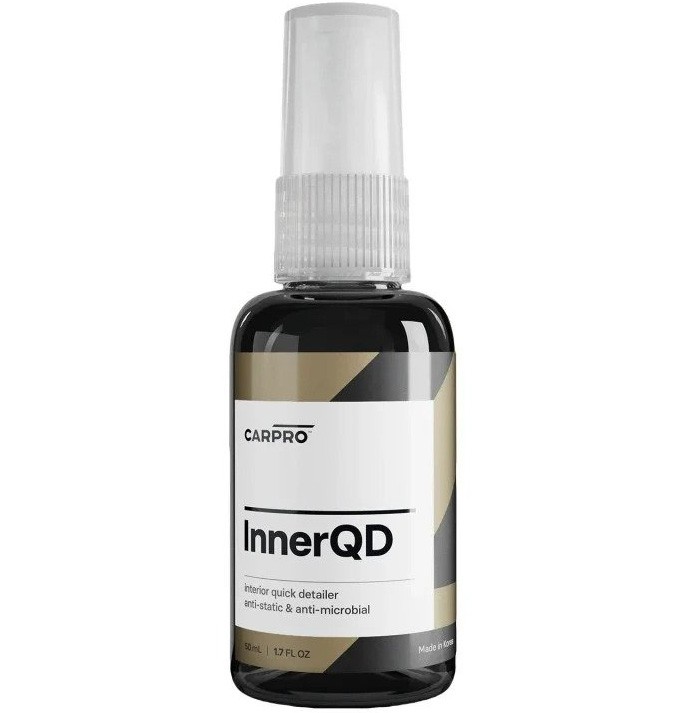 CarPro InnerQD is a fast interior detailer that is antistatic and antimicrobial - an interior detailing spray. It can be used on all interior surfaces to clean light dirt, fingerprints, dust and remove the electrostatic adhesion of dust particles as well as the growth of pathogenic microorganisms. InnerQD's formulation is designed to leave a dry, satin, anti-static, smudge-free finish that prevents further dust accumulation.Key features of the CarPro InnerQD detailer