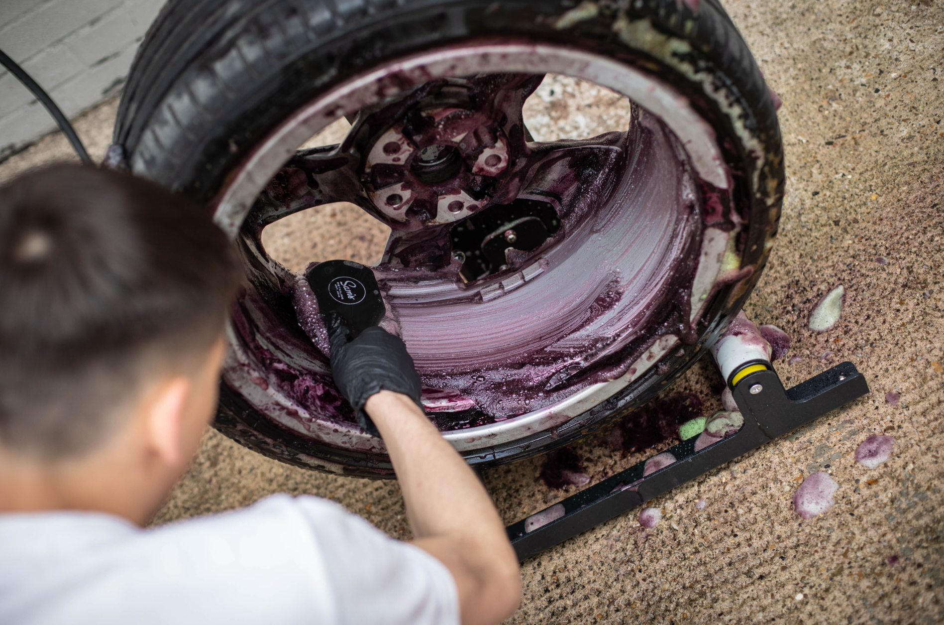 - Spray gradually on the paint or wheel surface.