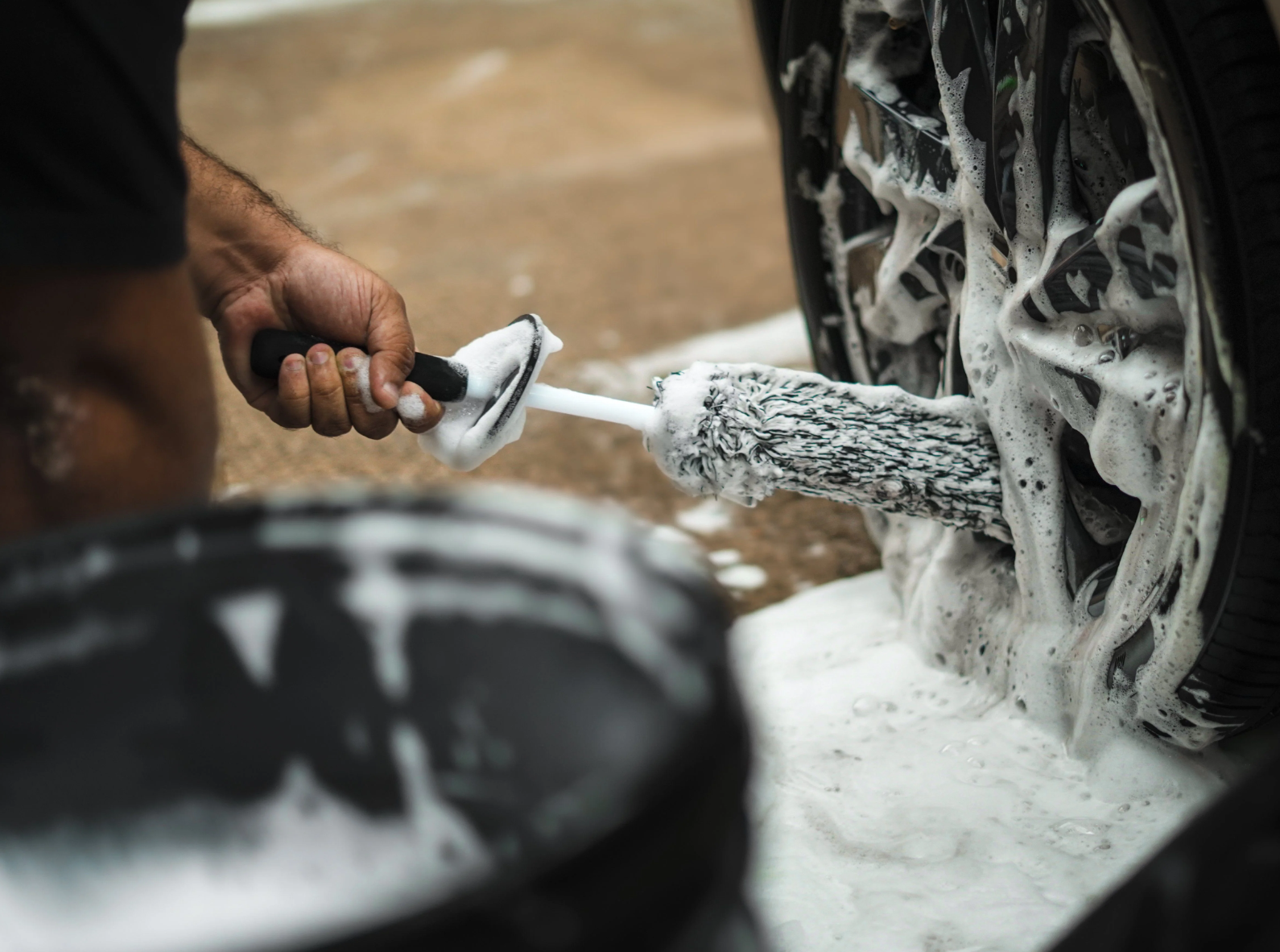 The flexible brush with soft bristles is designed to get deep into your car's wheels. The rubberized handle ensures that the paintwork of the wheels will not be damaged. Do not use the brush with acidic wheel cleaners. After washing the wheels, rinse the brush thoroughly to extend its life.