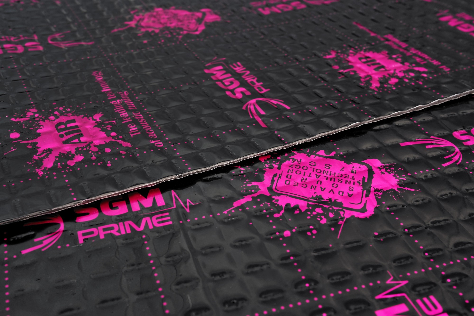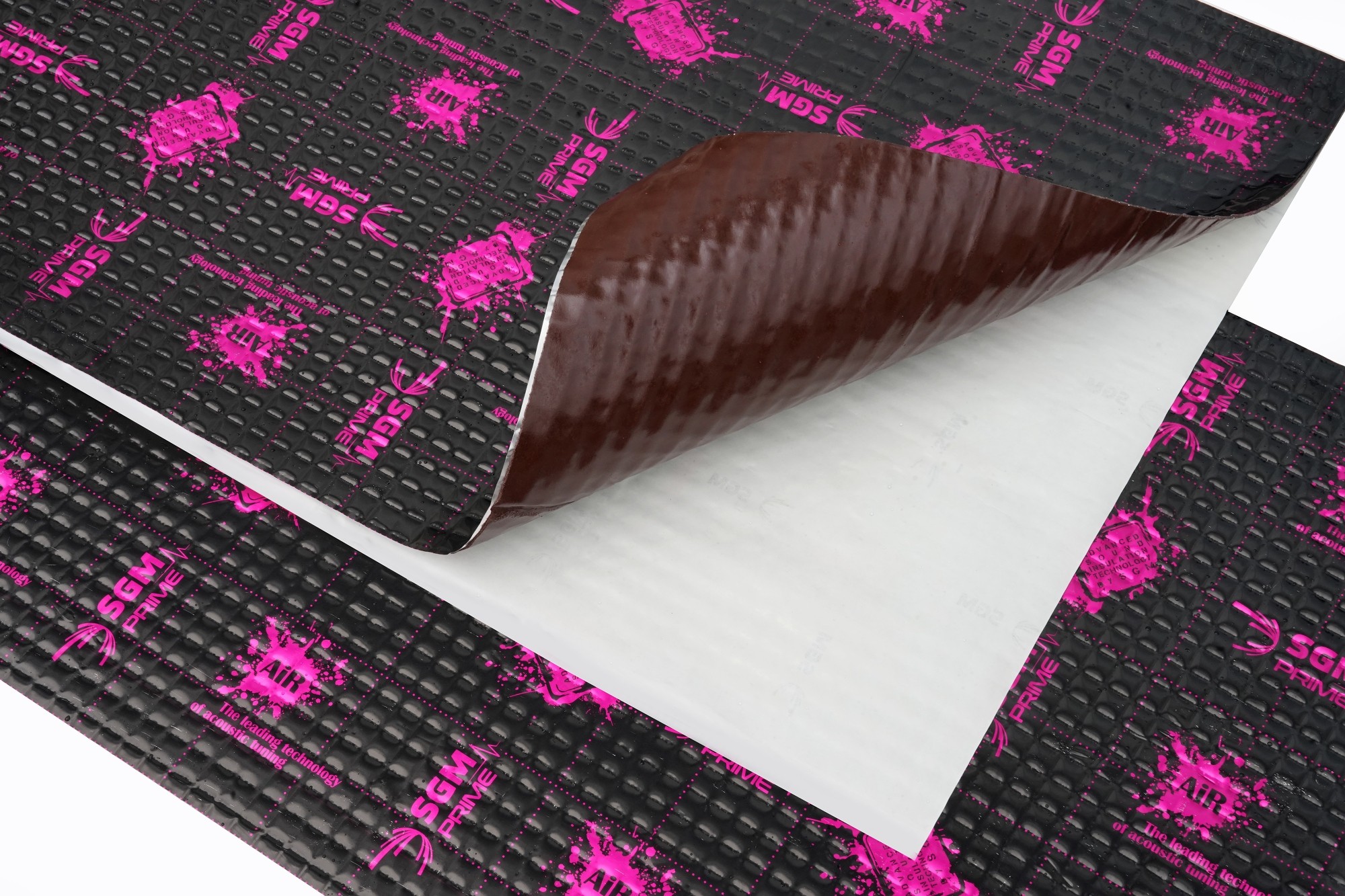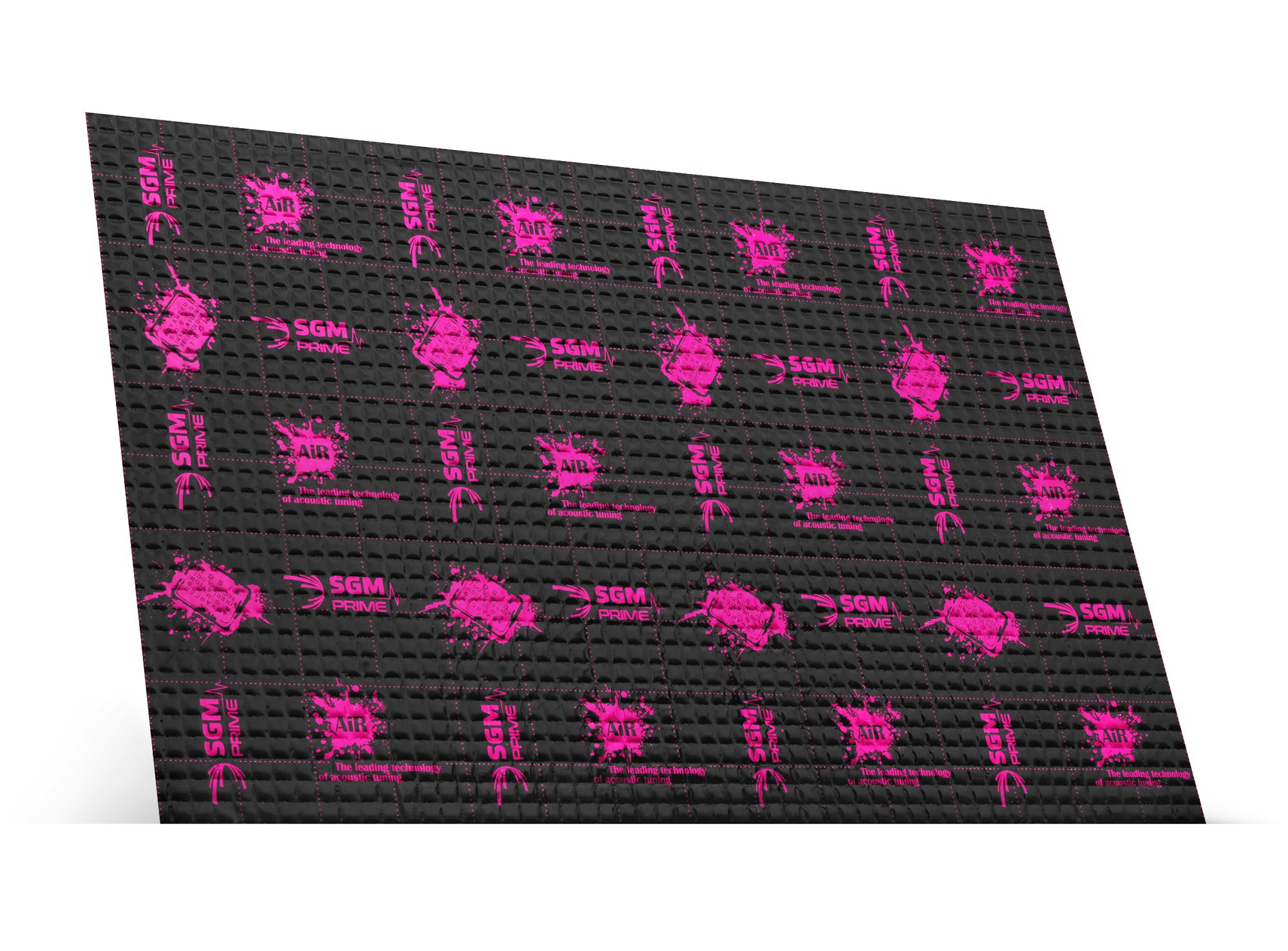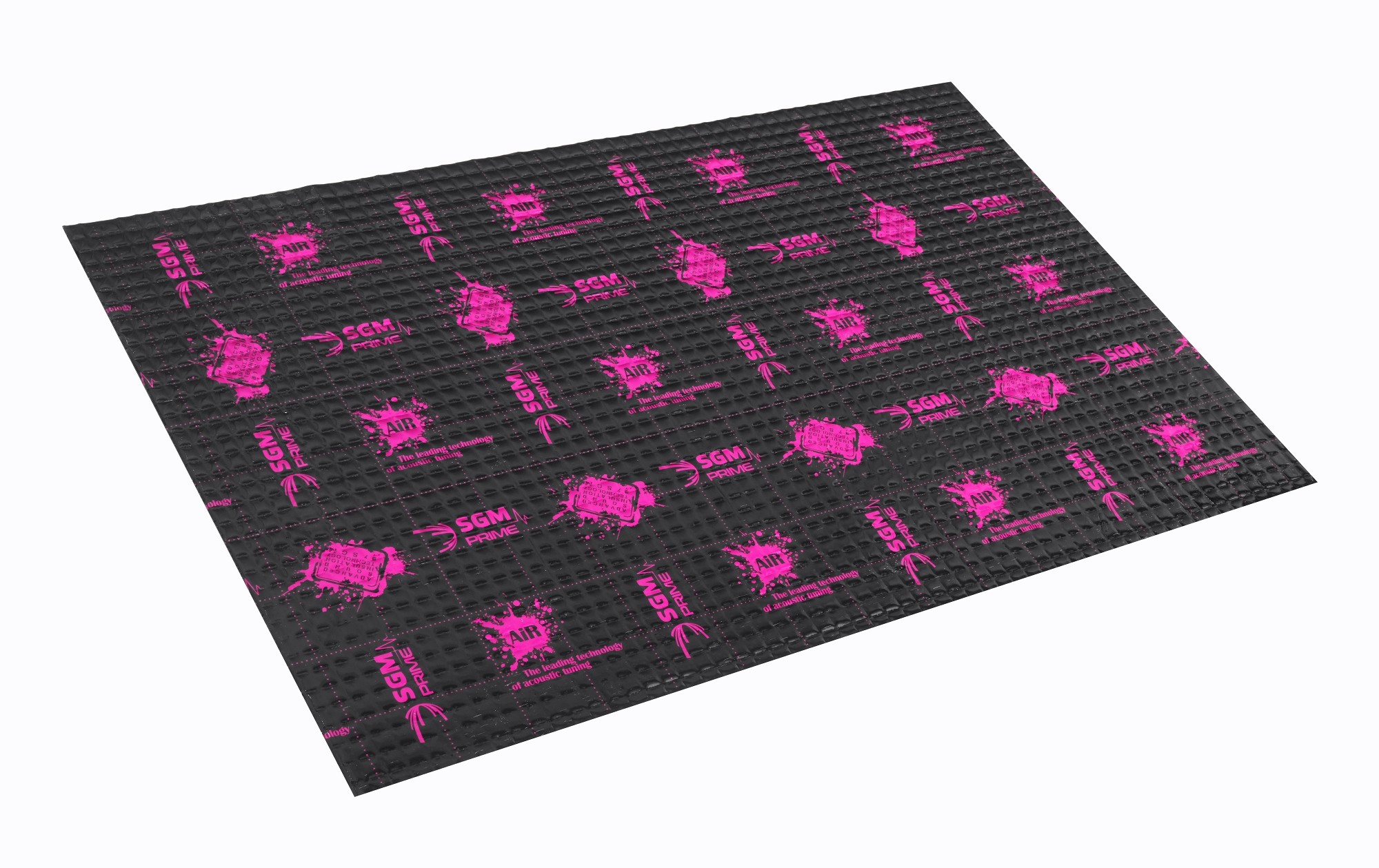 First-class anti-vibration material from the highest model line Prime from SGM company with extremely low weight. The completely new formula of the rubber compound of this unique anti-vibration material allows it to maintain a high acoustic loss factor (MLF) and stability over a wide temperature range while maintaining a very low weight. The special composition of the rubber compound ensures high adhesion and efficiency of the material, and the viscoplastic structure of SGM Air very effectively dampens body microvibrations. Aluminum foil with a thickness of 100 microns increases the strength and structure of the material, the square embossing and the black lacquer with a modern print will stand out when installed in any car. The material is of course resistant to water and oils, has anti-corrosion properties and maintains the same properties in every season. Like all SGM anti-vibration materials, Prime series materials are resistant to water, moisture, oils and extreme temperatures and have anti-corrosion properties.