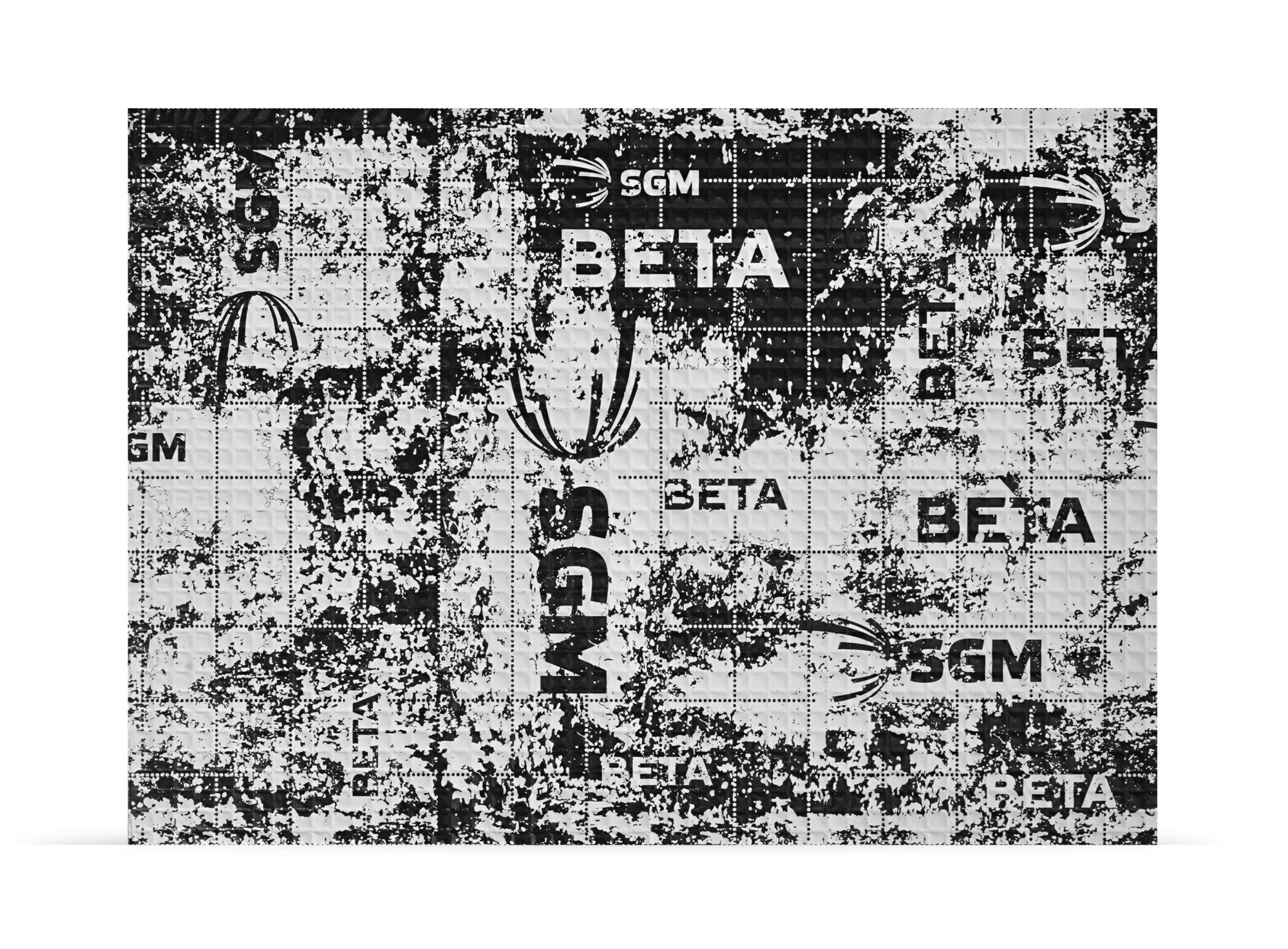Anti-vibration material of the Beta model series from SGM, which consists of self-adhesive polymer butyl rubber and aluminum foil with a thickness of 60 microns. The film with a square embossment and black lacquer is equipped with the manufacturer's logo, on the assembly side the material is protected by a siliconized film. The anti-vibration material from the Beta series stands out for its low price, high adhesion to metal surfaces and stability. An acoustic loss factor of 0.22 units together with a thickness of 1.7 mm allows for sufficient ability to prevent vibrations. The biggest difference compared to the basic Base series is therefore higher adhesion to metal and efficiency due to more significant values of the acoustic loss factor. Like all SGM anti-vibration materials, Beta 1 is resistant to water, moisture, oils and has anti-corrosion properties.