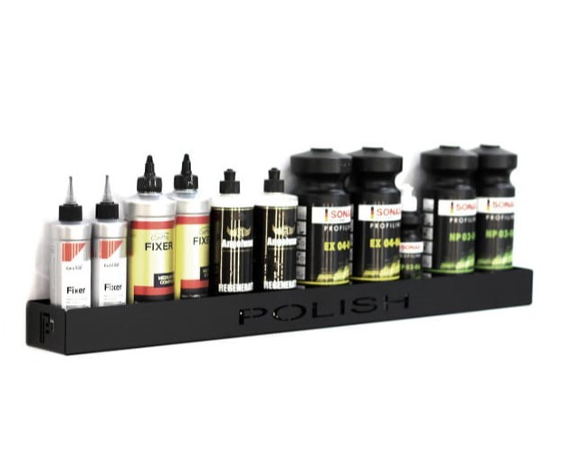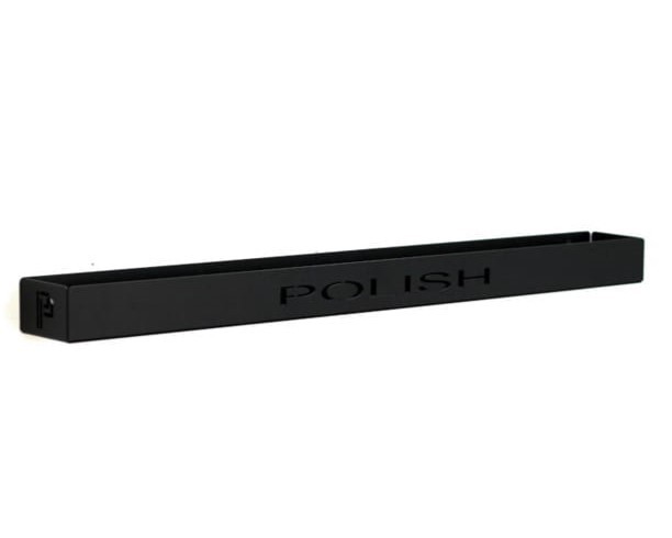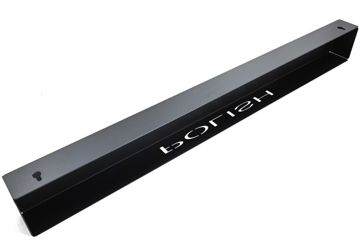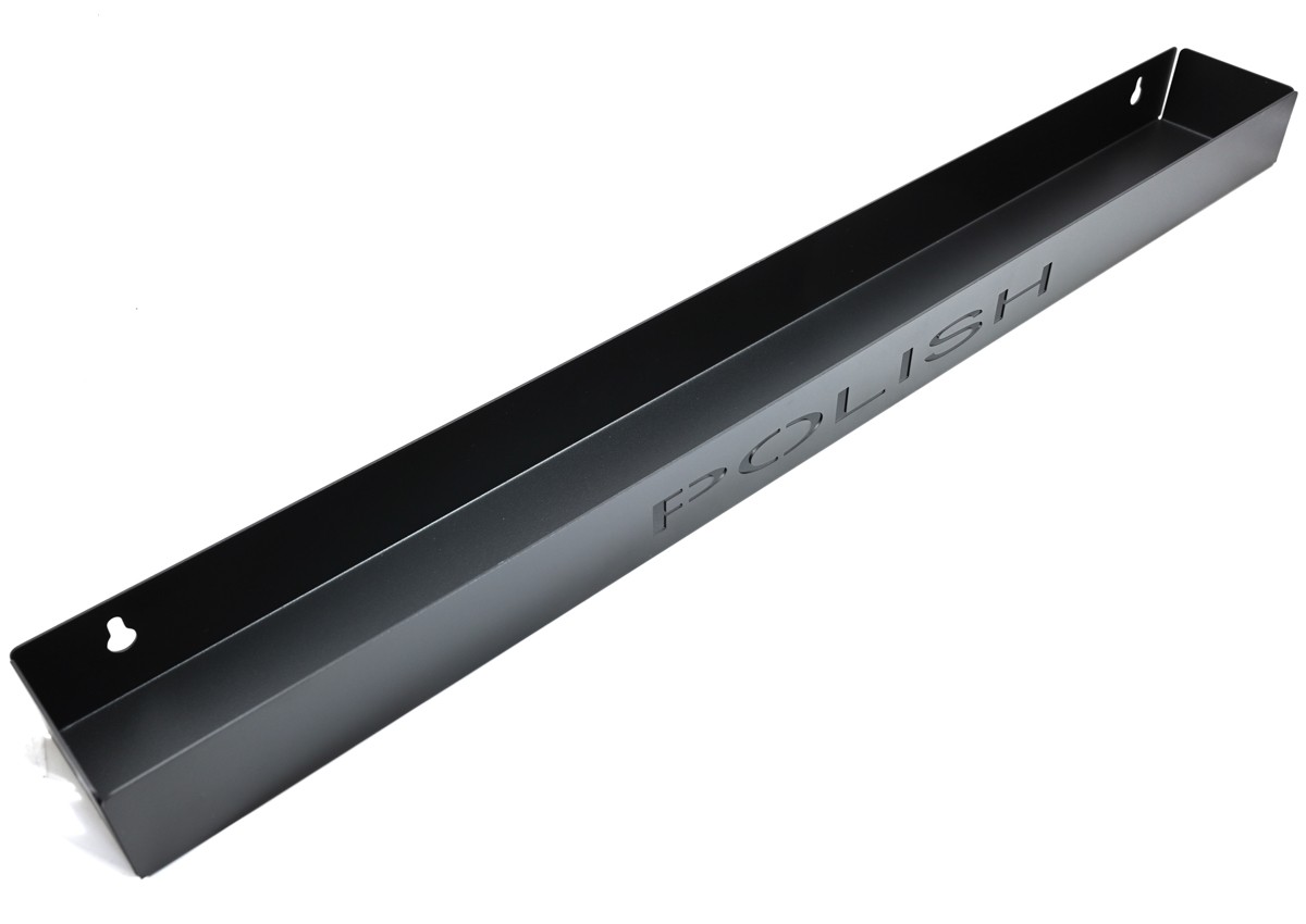 Poka Premium Tray Polish 80 cm is a wall shelf for storing polishing pastes in packages up to 86 mm in diameter. Convenient and functional shelf for storing polishing pastes or lubricants. The depth of 86 mm enables the storage of even larger packages. The mounting holes for screwing to the wall are located at the back of the shelf, thus guaranteeing total stability. The high-quality metal is treated with powder paint that protects against further oxidation. The Poka Premium logo is carved on the left side.