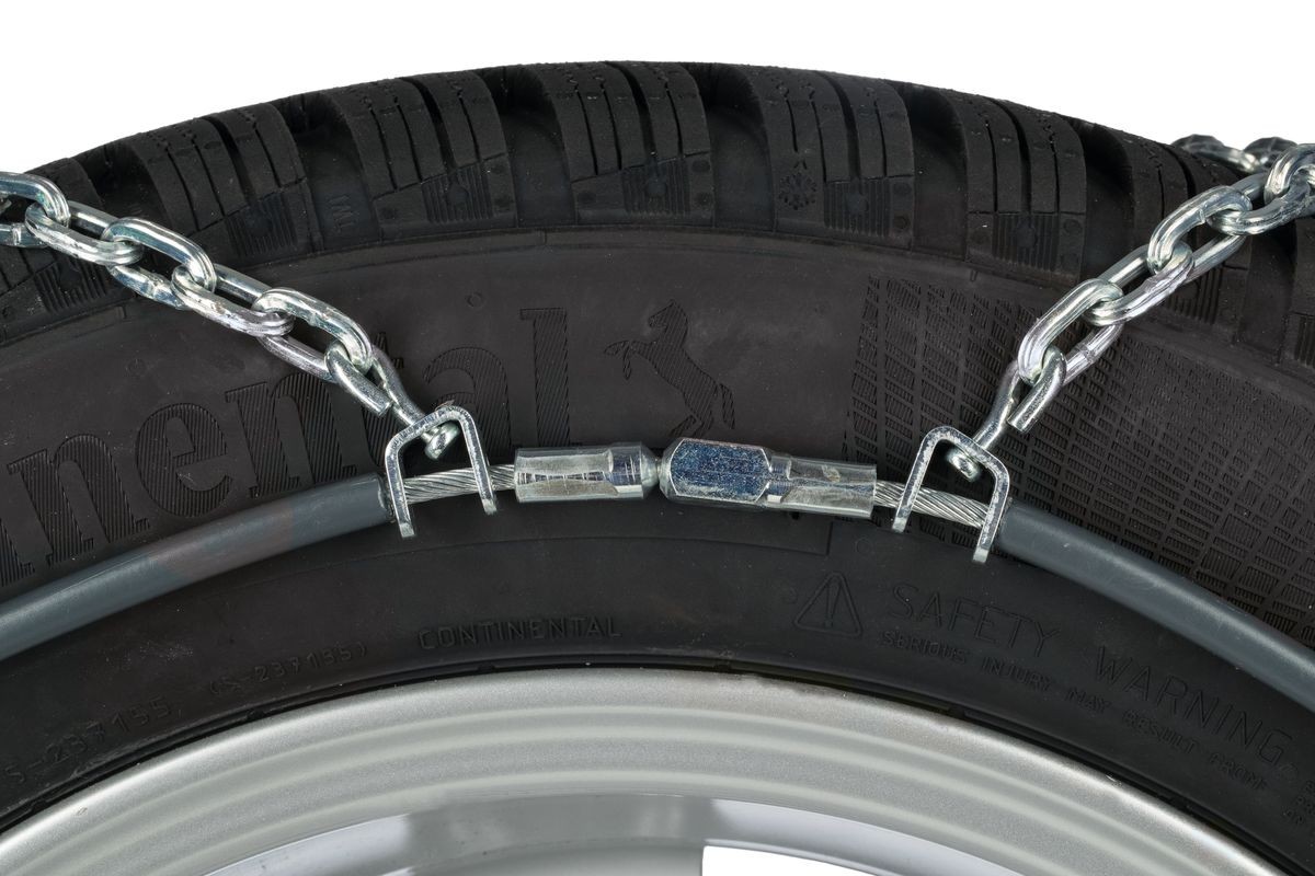 Chain set that includes 2 pieces of high quality Pewag Brenta-C snow chains. The square chain links precisely fit together and thus prevent the chain from twisting under load and at the same time ensure optimal transmission of engagement and braking forces. The patented corrugated profile subsequently increases the engagement and extends the life of the chains. Thanks to the slanted track of the central crossbar, in addition to the transmission of the lateral guide, there is also the transmission of traction of braking and starting forces, which is minimal for chains with a straight guide. Brenta-C are the best-selling Pewag chain model in Europe. Brenta-C chains are more massive and stronger than Brenta 9. Brenta-C has 0.45mm more chain thickness (3.55mm vs. 3.10mm) and 4.10mm more eye height than Brenta 9. Chains are packed in a practical plastic case. For a more convenient selection of Pewag snow chains, you can use their original Pewag configurator . Designed for passenger cars, crossovers and smaller SUVs.