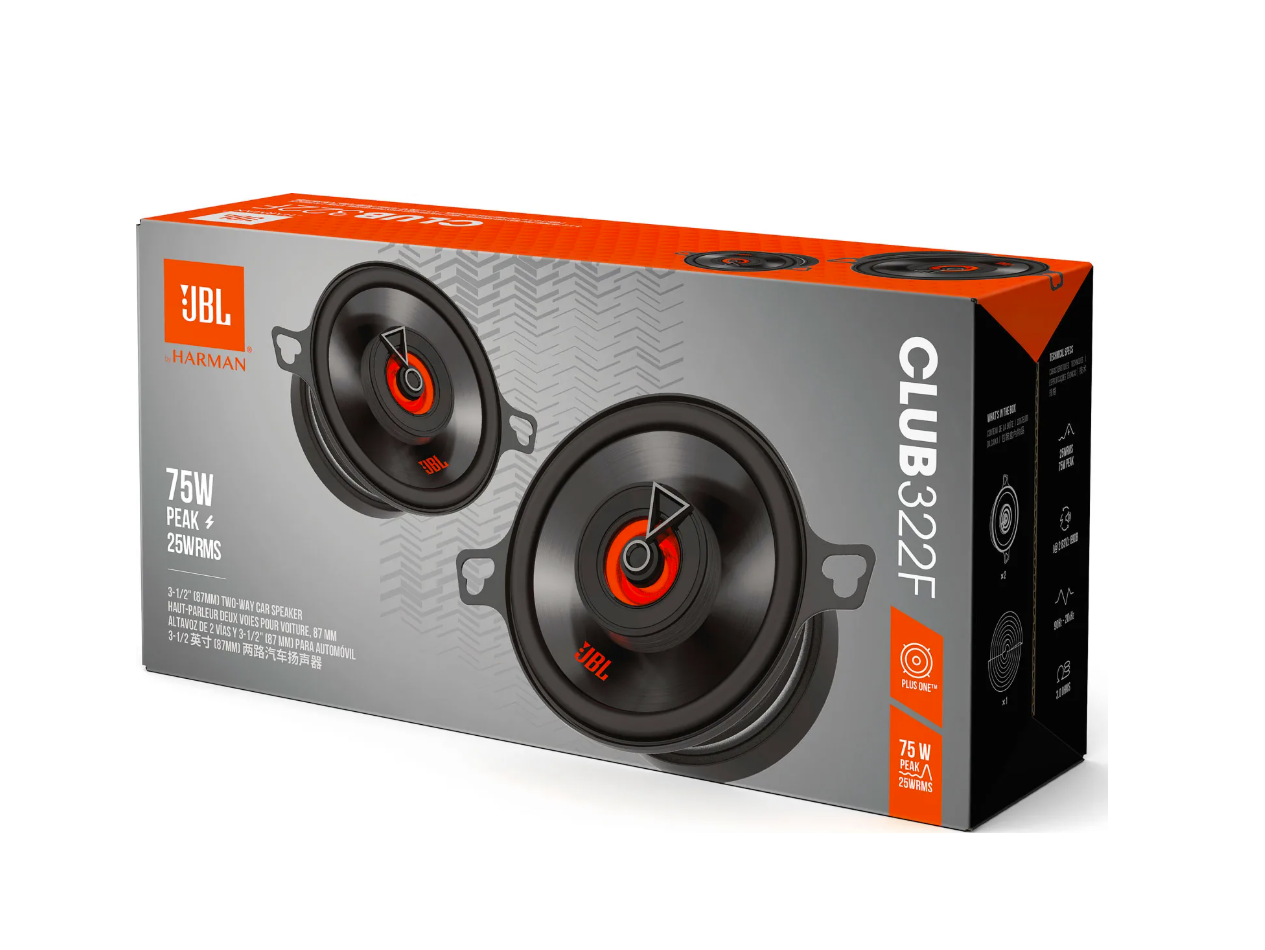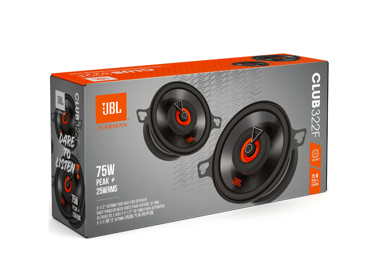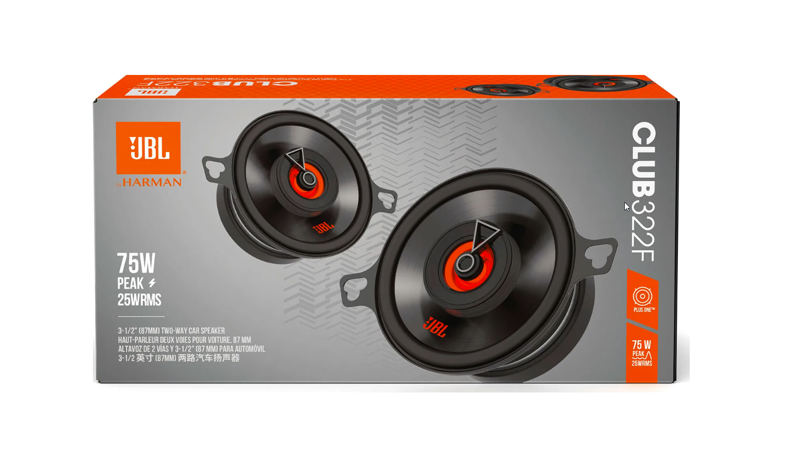 The JBL Club 322F speakers are a compact solution for upgrading factory audio, bringing significantly better clarity and detail even in tight installation positions. These 3.5" (87 mm) two-way coaxial speakers are ideal for dashboards or rear positions where there isn’t space for larger speakers. Thanks to their high sensitivity, they perform very well even when powered by a standard car stereo without the need for an amplifier.