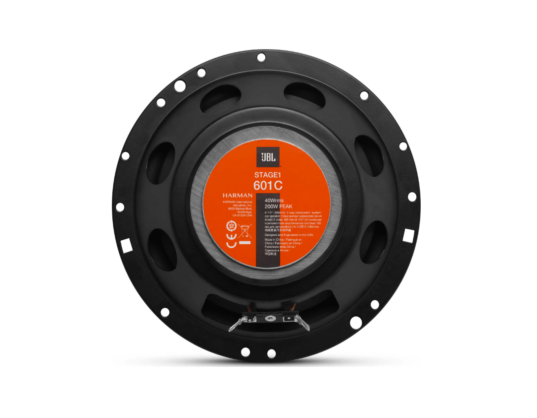 \n\nThe JBL Stage1 601C speakers are 6.5" (160 mm) two-way component speakers that offer an affordable upgrade to factory audio for customers who want more detail, space and cleaner sound than typical coaxial speakers. With separate tweeters they deliver more natural highs, an improved stereo image and an overall more balanced musical performance. For the Stage1 line, JBL focuses on simplicity, reliability and the signature fun sound that can significantly enliven factory car audio.