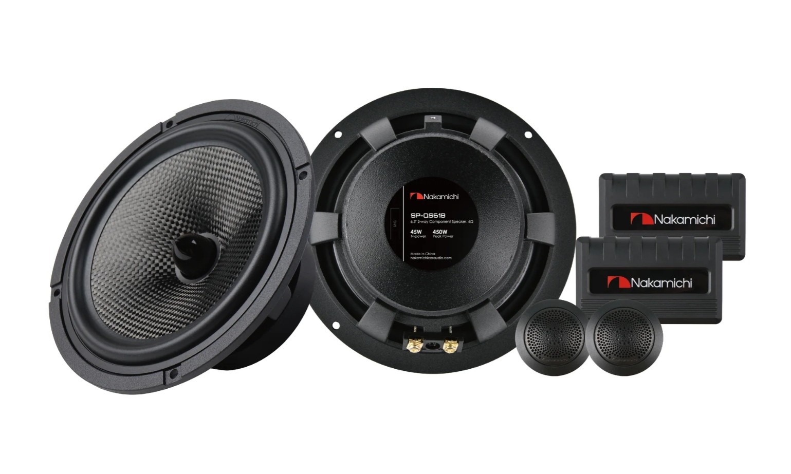 The Nakamichi SP-QS618 component speakers expand the successful NSA model line in 2023 and bring several improvements. The diaphragm of the mid-bass speaker is made of carbon fiber, which is an unprecedented material in this price category. Thanks to this, the membrane is very strong, stands out for its perfect self-damping and also for its exemplary lightness. Part of the mid-bass is a fixed phase canopy to avoid phase shift and mid-range drop. The rubber hinge ensures flexibility and durability in the extreme conditions of the car. The 20 mm dome of the tweeters is made of silk for a soft and natural delivery of high frequencies and is protected by a designer grille with increased sound permeability. The package also includes frequency crossovers for easy connection in passive mode.Important features of the Nakamichi SP-QS618 speakers