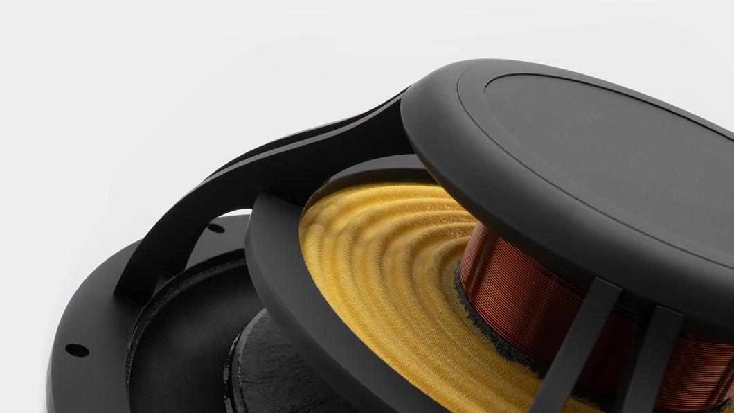 The use of a neodymium magnet in a subwoofer of this category is exceptional and again confirms the brand’s unconventional approach. Neodymium provides an exceptionally strong magnetic field in very compact dimensions, allowing high acoustic performance without a bulky magnet system. This makes it possible to install the Fantasia Sub in tight spaces and compact enclosures where conventional subwoofers with ferrite magnets would encounter spatial limitations. The basket design follows the minimalist, open concept applied to the Fantasia woofer. Maximized airflow significantly reduces turbulence and back pressure around the voice coil, improves cooling and contributes to lower distortion at large excursions. The subwoofer therefore preserves a calm, firm and precisely defined character even under prolonged load.