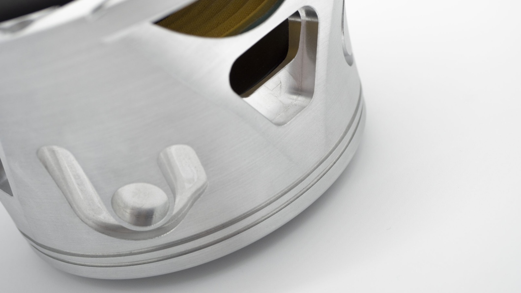- Basket machined from a single block of aluminum weighing 6,265 g.