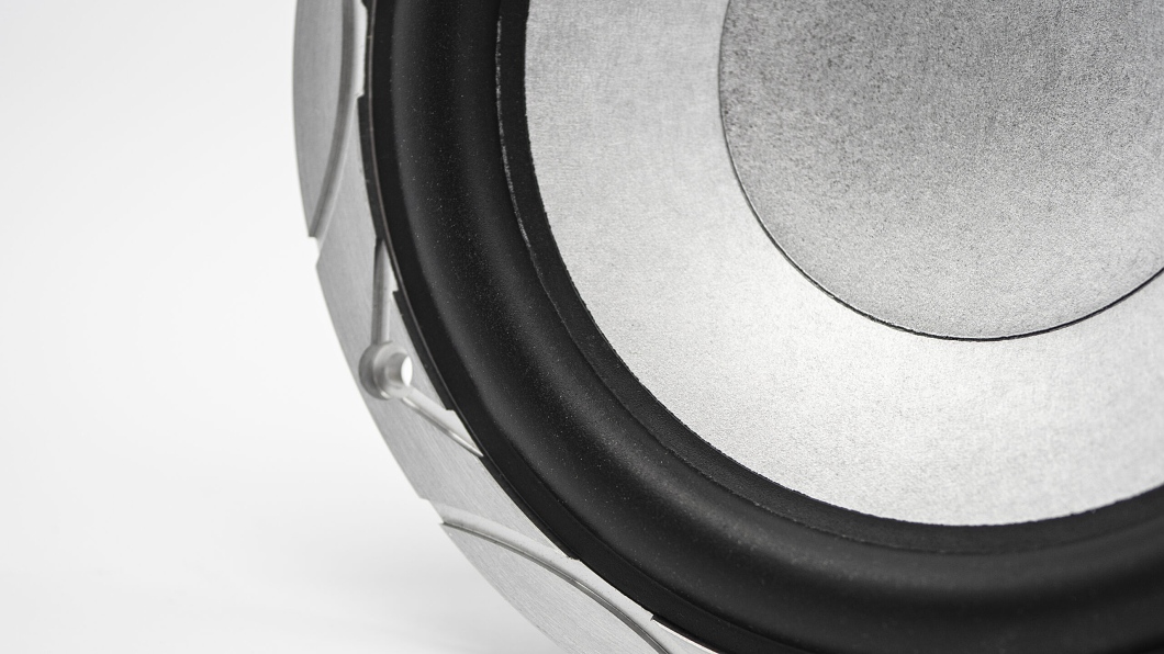 The top Opus range includes mid-bass, midrange and tweeter drivers machined from a single block of aluminum. Interestingly, the aluminum block for the mid-bass driver can no longer be reused to produce the smaller components, such as the midrange and tweeter drivers. Even though only just under 12% (744 g) of the original weight of the aluminum block (6265 g) is used. The one-piece aluminum basket leaves no tolerance for performance loss during cone movement and is entirely immune to vibrations. It also ensures optimal airflow and excellent heat dissipation from the voice coil thanks to five huge openings between the spider and the magnetic system. The drivers’ design is complemented by metronome-shaped cable terminals, machined from brass and subsequently nickel-plated. To ensure maximum sound fidelity, the mid-bass and midrange drivers use a traditional paper cone in a silver finish that perfectly matches the aluminum basket. The tweeters, with a 28 mm silk dome, are also made from a single block of aluminum. Despite their small size, the tweeter contains a rear chamber behind the magnet that allows the tweeter to reach lower frequencies, which is particularly appreciated in a two-way system. The integrated connectors were designed to offer a cohesive aesthetic while keeping the speaker volume as small as possible.