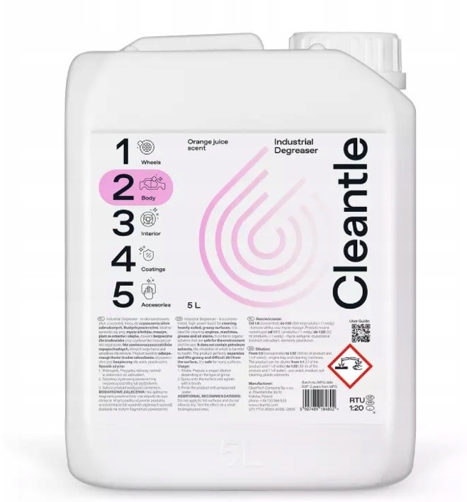Industrial Degreaser is a concentrated, highly effective liquid for cleaning heavily soiled, greasy surfaces. It is ideal for cleaning engines, machinery, trucks, grease and oil stains. The product perfectly separates greasy and heavy dirt from the surface and is safe for many surfaces. Contains organic solvents that are safe for the environment and users. It does not contain petroleum solvents, the inhalation of which is harmful to health.