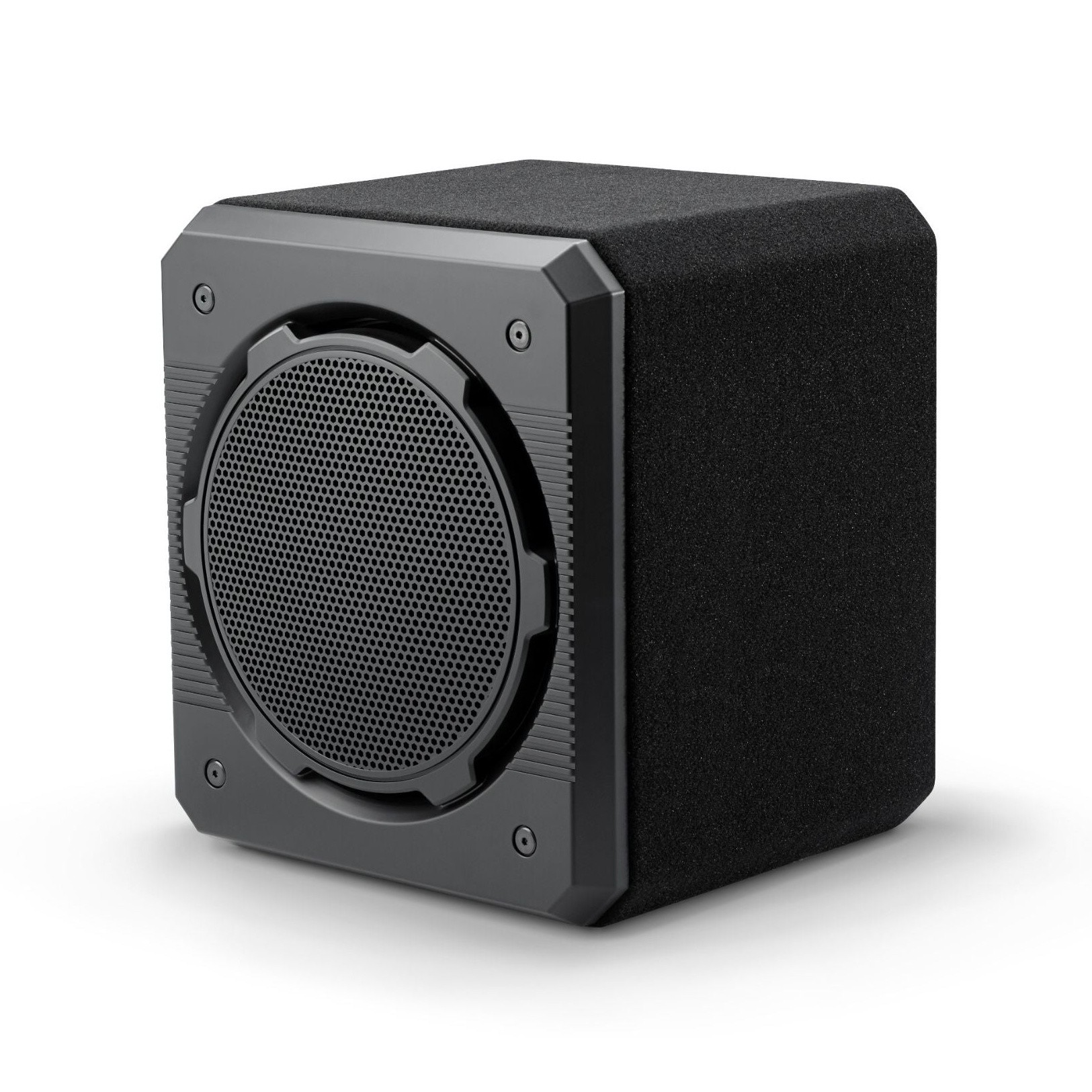 JL Audio uses state-of-the-art automated woodworking equipment to produce a high-quality MDF cabinet with durable automotive carpet, steel mesh grille, 5-way connecting posts and solid internal wiring. The enclosure is built and inspected by hand in a Florida manufacturing facility to ensure you get the bass you expect from JL Audio. Although they did cut the edges of the medium density fiberboard (MDF) enclosure, it obviously did not affect the quality. At JL Audio, they incorporated a V-Groove™ design that ensures solid connections with no resonances and no air leaks. The ProWedge™ enclosure is topped with a solid polymer grill that protects the entire subwoofer, unique to a closed subwoofer design.About the JL Audio brand