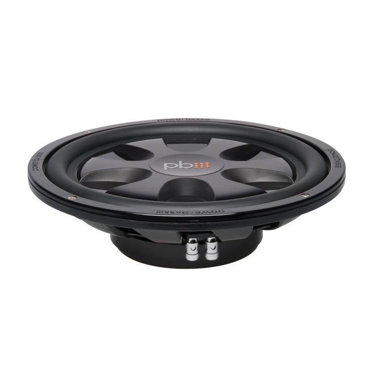 A shallow subwoofer with a new basket construction made from a combination of polycarbonate and fiberglass composites (much more stiffness and strength than any basket made of steel). The unique one-piece diaphragm is another breakthrough in woofer technology, more durable and stiffer than paper. This polypropylene membrane is able to withstand the heavy use that occurs in the context of deep bass in a small enclosure. By adding a solid and wide rubber suspension and a 51mm vented voice coil, the woofer has the ability to play loud in a small enclosure.Main features of the Powerbass S-12T subwoofer