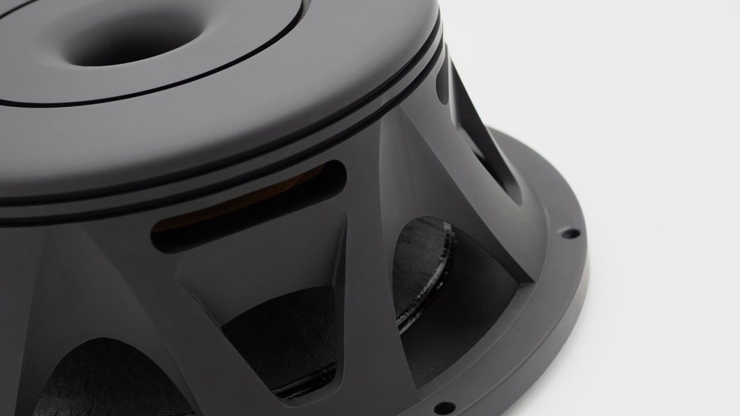 The driver basket is machined from a single massive block of material. This approach ensures absolute structural rigidity and zero assembly tolerances, eliminating any unwanted mechanical play. The result is perfectly precise cone guidance and complete stability even at extreme excursions, without performance degradation or change in sound character. The use of a neodymium magnet is unusual for a subwoofer, but at Quartorigo it becomes one of the key design elements. Neodymium offers an extremely strong magnetic field in minimal dimensions, enabling high sensitivity of 92 dB, fast response and exceptional cone control. At the same time it significantly reduces space requirements, allowing the Opus Sub to be integrated into compact enclosures and demanding automotive installations without performance compromises. Precision-machined cooling channels are placed between the magnet system and the spider, strategically designed to maximize airflow. This solution greatly improves thermal management of the voice coil, reduces compression under long-term load and preserves consistent acoustic properties even at high volumes. The subwoofer therefore operates with complete composure and control even in situations where conventional designs reach their limits.