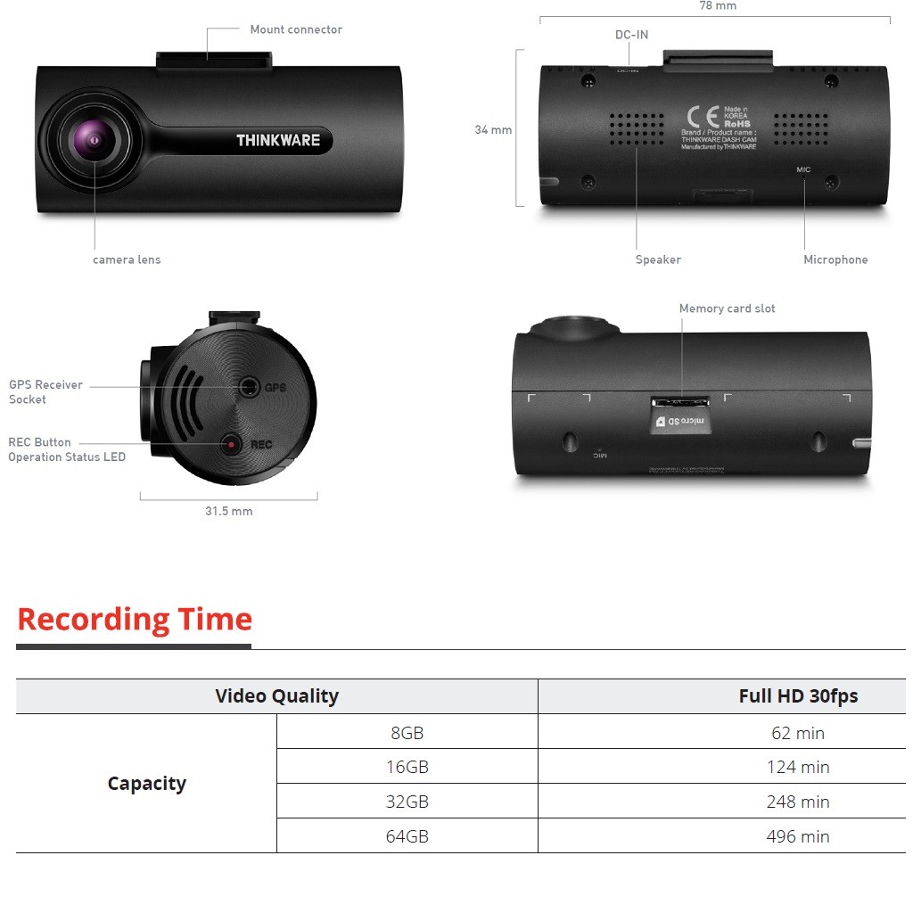 Thinkware F70 HW dash cam