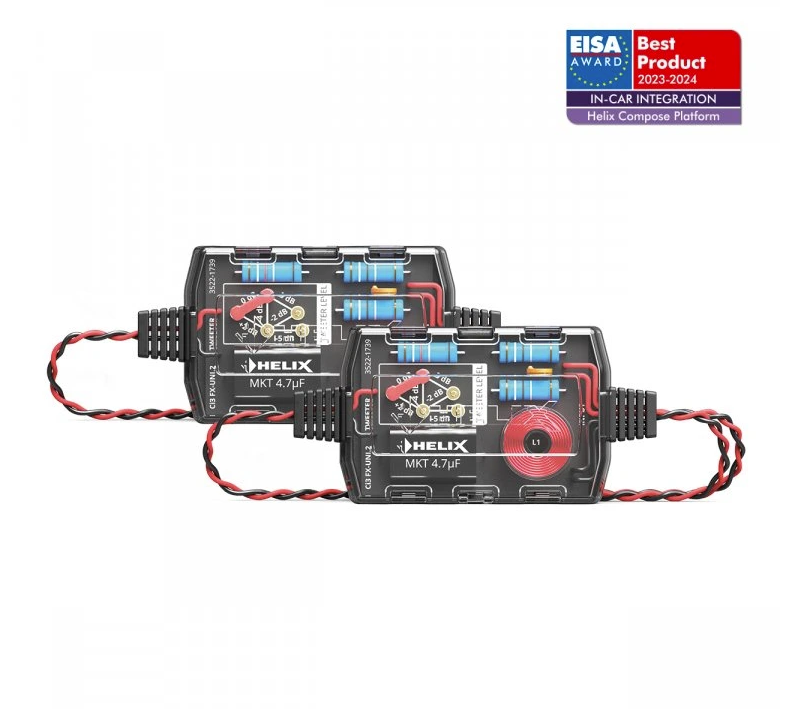 The Ci3 FX-UNI.2 crossover is designed for ideal use with HELIX Compose i3 components, and thus for typical professional integration into a COMPOSE vehicle. It offers a 6-step tweeter level adjustment with a 12 dB slope for optimal adaptation to the installation position and integrated tweeter protection. In addition, the crossover has been extensively tuned for the best possible frequency distribution and a harmonious sound image. Thanks to its compact dimensions, the Ci3 FX-UNI.2 is perfectly suited for installation in confined spaces. It is also compatible with COMPOSE Connect and WireKit technologies for secure and reliable connections to automotive standards.COMPOSE Connect